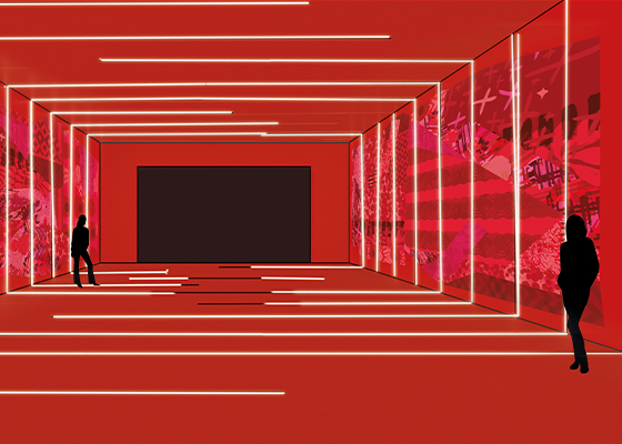 L’installation propose une immersion totale dans un espace matriciel où le rouge, dans sa puissance symbolique, devient un vecteur d’émotion et de réflexion.
